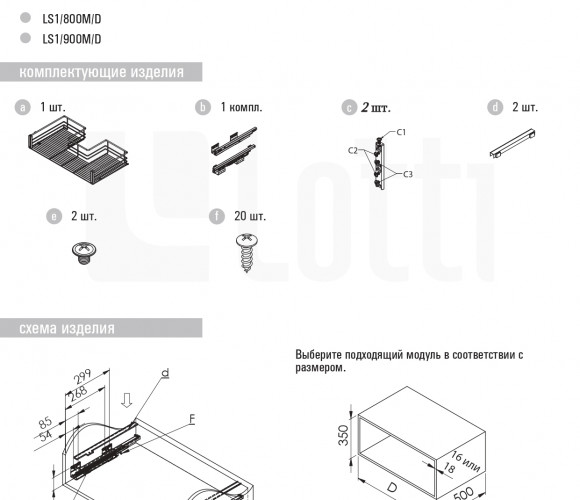 Cargo 800мм Корзина под мойку с крепл. к фас., с дов. 764х460х180мм хром LS1/800M/D-Е