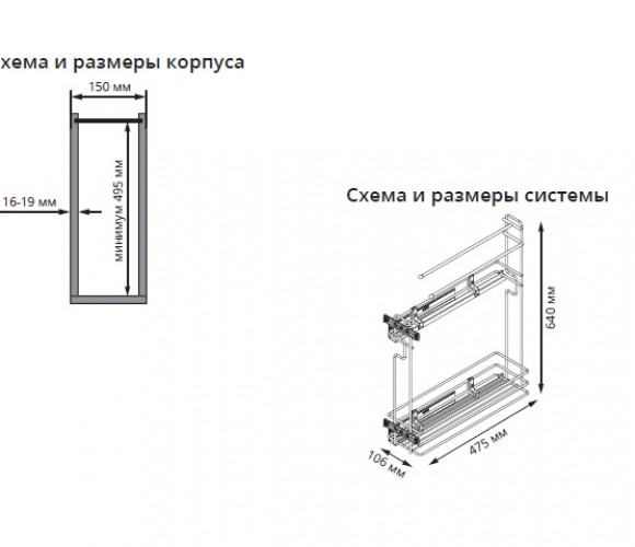 Cargo mini 150 мм Starax Tandem Cristal, (106*475*640) полн.выдв., правая S-2642-C