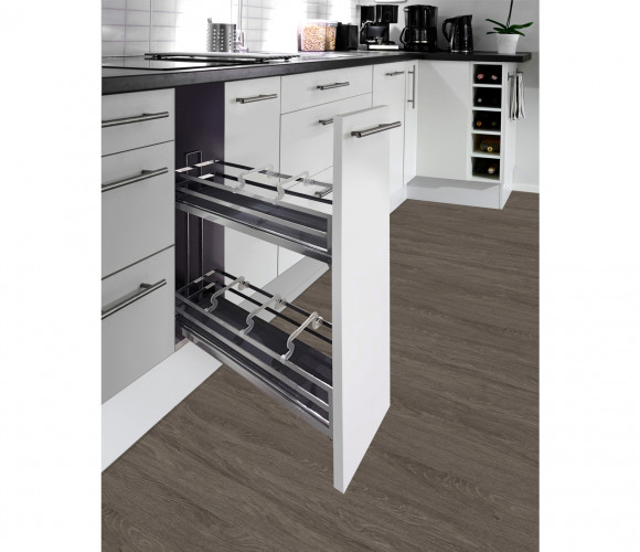 FLORA — это современная комфортная бутылочница с амортизацией, предназначенная для удобного хранения емкостей различной высоты в модулях шириной 150 или 200 мм.