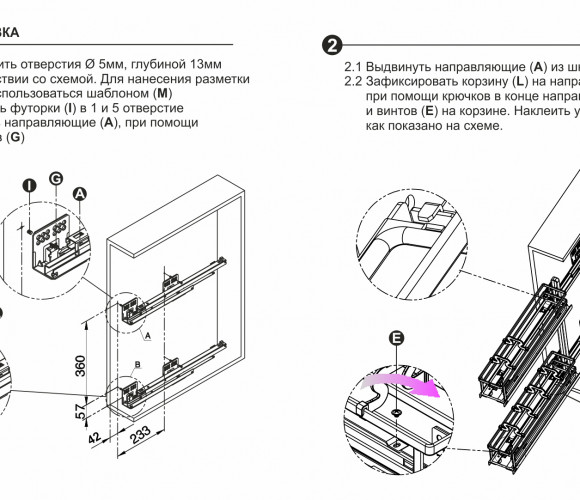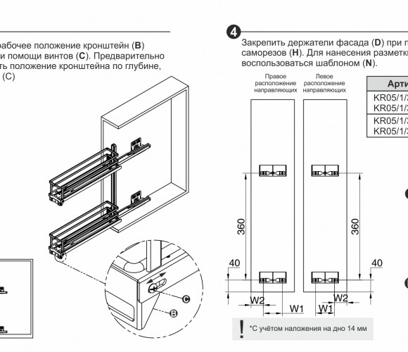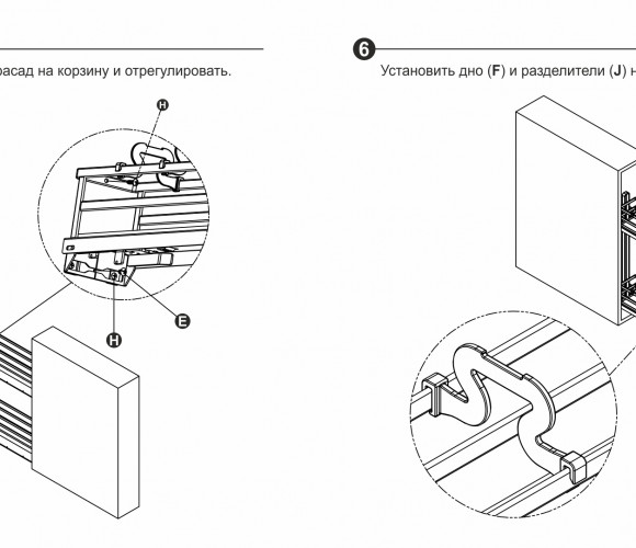 FLORA может быть установлена на левую или правую боковину модуля с помощью направляющих нового поколения с синхронизацией и доводчиком длиной 450 мм, которые обеспечивают легкое, равномерное и бесшумное движение бутылочницы. Система обеспечивают удобную трехмерную регулировку положения фасада.