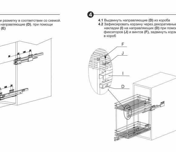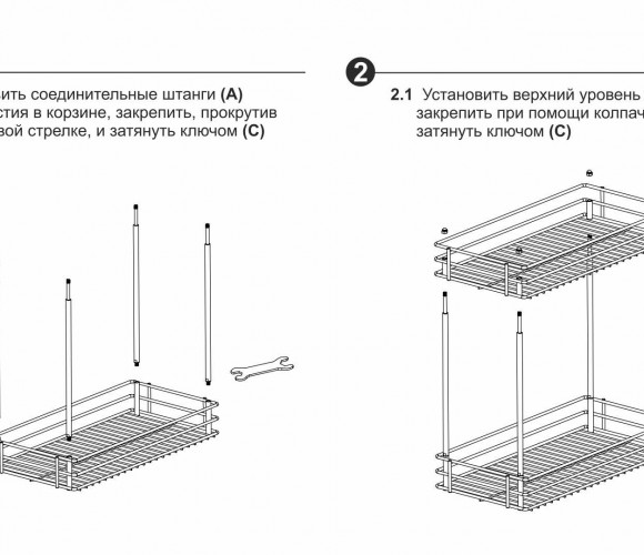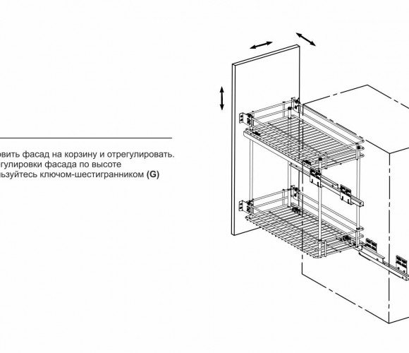 Установка направляющих по диагонали обеспечивает наиболее жёсткое крепление, лучшее сцепление каждого яруса корзины с направляющими и стабильный ход при полном выдвижении, даже с максимальной загрузкой корзины.
