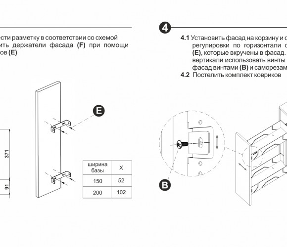 В модели X.FIT KR43 имеется съёмный держатель фасада с 2D-регулировкой по вертикали и горизонтали. Возможна установка с рамочными фрезерованными фасадами из плитных материалов с отступом от края фасада от 45 мм. Бутылочница оснащена антискользящими ковриками, который обеспечивает максимальную устойчивость хранимой утвари на обоих этажах.