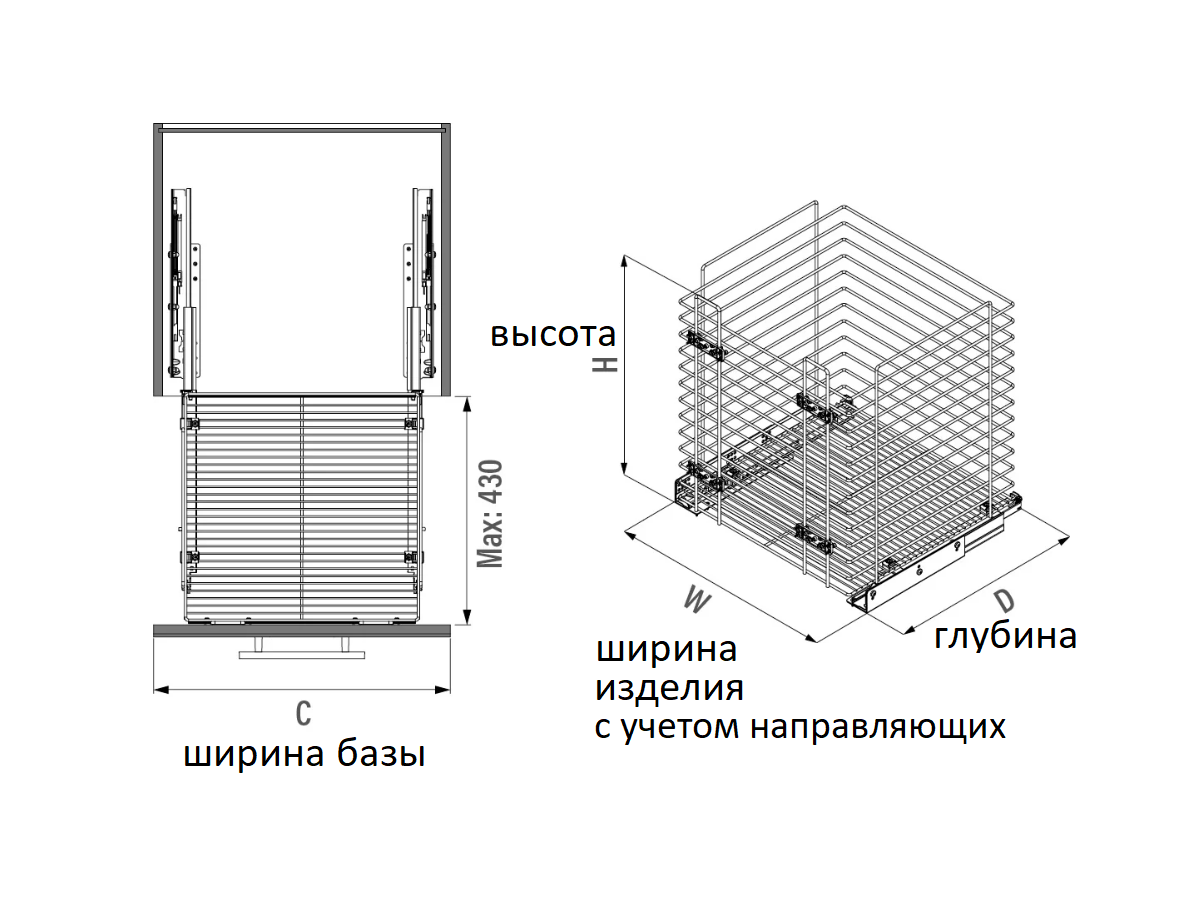 Корзина Starax для белья с нижним креплением, шир.400мм. (340х470х550) хром S-8053-C 0610413