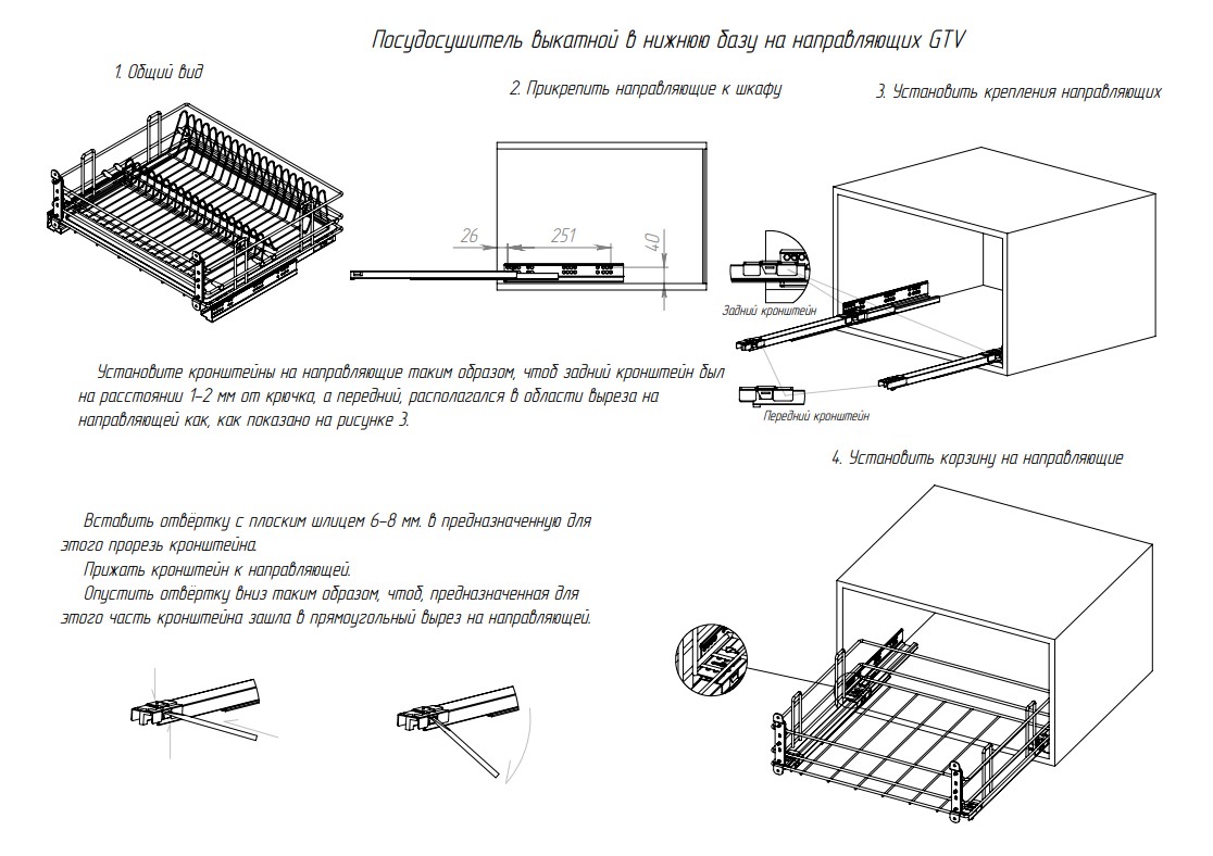 Тип корзины Посудосушитель выкатной