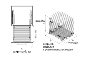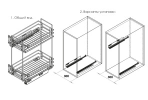 Cargo mini 300мм Квадро 3 + направл. Хеттих, бок. крепл. , с крепл. к фасаду
