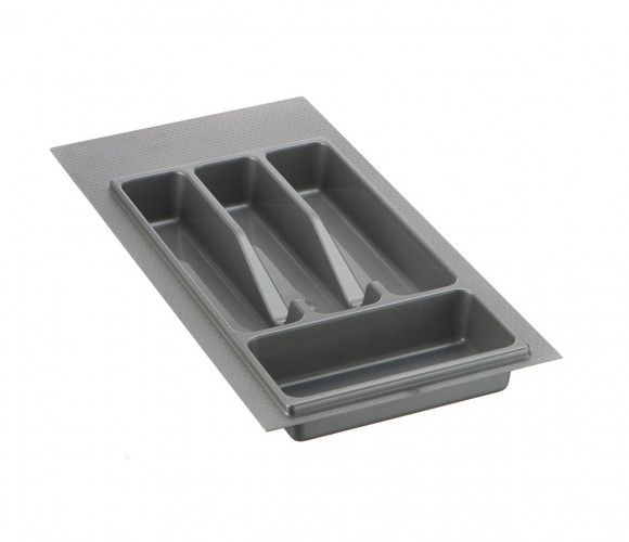 Вкладыш М 300-350 мм серый металлик – кухонный аксессуар, необходимый практически в любом доме. Лоток позволяет удобно рассортировать внутри кухонного ящика ложки, вилки, ножи и другие постоянно используемые столовые приборы. Лоток специально подбирается под размеры конкретного ящика стола или кухонного гарнитура.