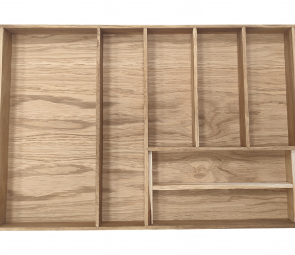 Вкладыш для столовых приборов выполнен из экологически чистого прочного дерева -дуб, материал не впитывает запахи, легко моется, не деформируется. Удобное приспособление для организации кухонного пространства. Подставка для столовых приборов вместительная и компактная, сохранит порядок и не займет много места, идеально подойдет для ящика кухонного гарнитура. Вкладыш для ножей универсальный приобретается отдельно.