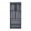 PC15 — поддон из экологичного полипропилена, необходим для хранения ножей разных габаритов. Является составным элементом для формирования индивидуальной комбинации поддонов линейки BL?KI для выдвижных мебельных ящиков глубиной 500 мм и шириной от 500 мм.