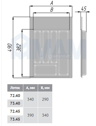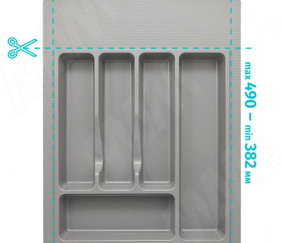 Применение: лоток универсальный — для использования с различными ящиками может потребоваться обрезка, максимальные размеры лотка и минимально возможные размеры для обрезки показаны на схеме