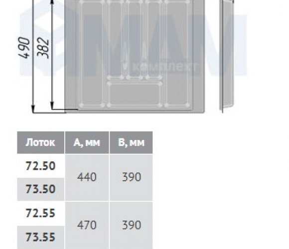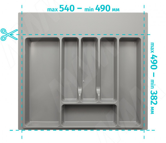 Применение: лоток универсальный — для использования с различными ящиками может потребоваться обрезка, максимальные размеры лотка и минимально возможные размеры для обрезки показаны на схеме