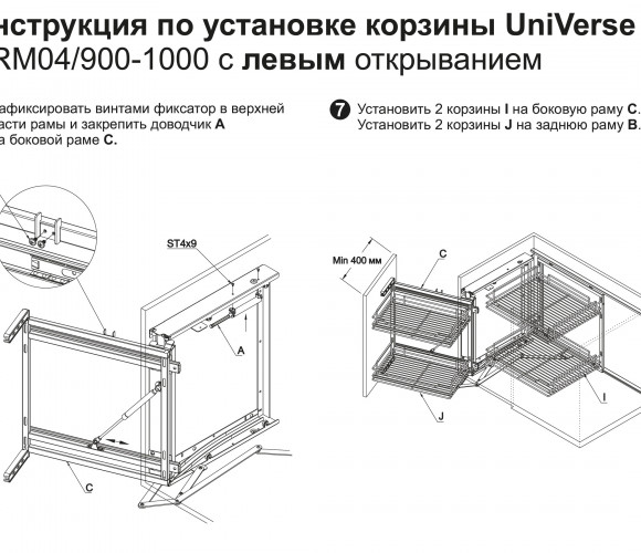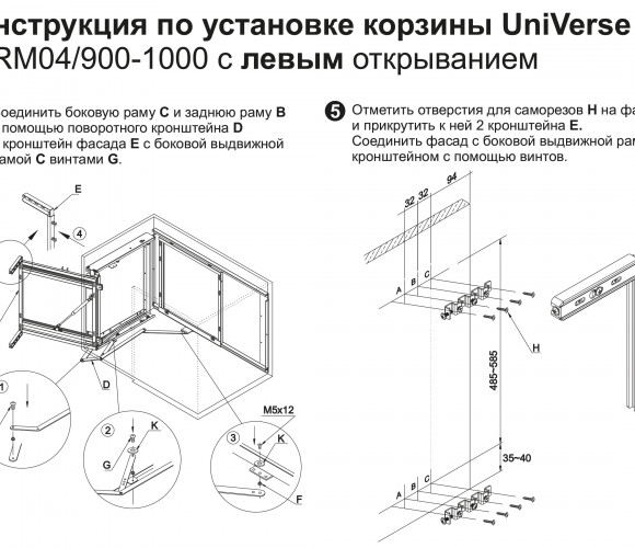 Корзина универсальна и может быть установлена как в левых, так и правых модулях на 900-1000мм.
