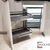 Поворотно-выкатной принцип выдвижения корзин обеспечивает легкий доступ в самые дальние уголки модуля, а два этажа корзин позволяют эргономично разместить множество предметов быта.
