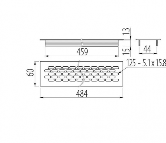 Решетка вентиляционная 484x60 мм, золото - элемент системы обмена воздуха в помещении, специально предназначенный для наружной установки в мебельное изделие. Решетка закрывает вентиляционное отверстие и обеспечивает нормальную циркуляцию воздуха.