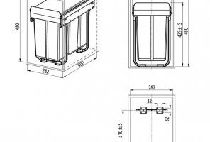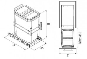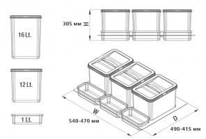 Контейнер выдвижной для мусора Starax 16+1л. , шир. 350 (260x440x400) Серый S-2391-G
