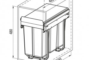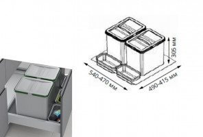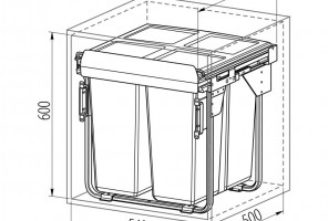 Сегрегатор для модуля 600мм (34L+2x17L) АНТРАЦИТ, с креплением фасада, с мех. доката