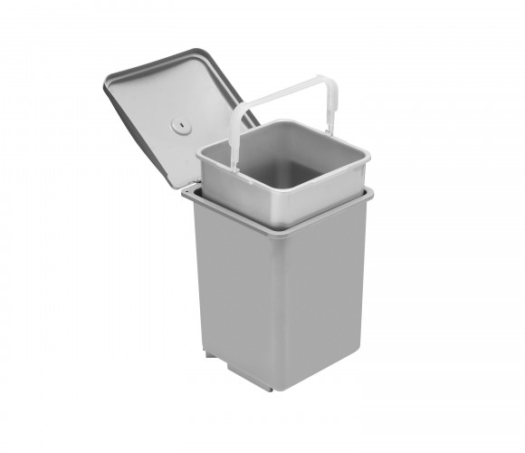 Ведро для мусора GUADRA – современная мусорная корзина, подходящая для установки в шкафчики шириной от 400 мм. Конструкция позволяет крепить корзину как с левой, так и с правой стороны в мебельном модуле. Контейнер изготовлен из экологически чистого пластика, вкладыш для хранения мусора имеет объем 13