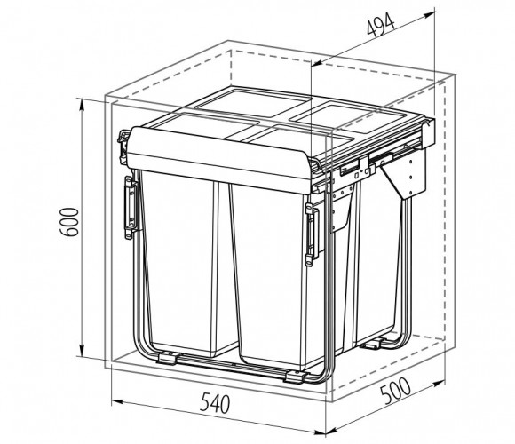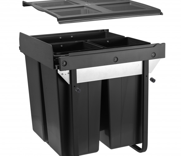 Сегрегатор для модуля 600мм (34L+2x17L) антрацит, с креплением фасада с доводчиком (в540мм, ш529мм, г494мм) - выдвижная система для раздельного хранения бытовых отходов. В основе подвижной части конструкции – шариковые направляющие с доводчиком. Мусорные контейнеры изготовлены из экологически чистого пластика.