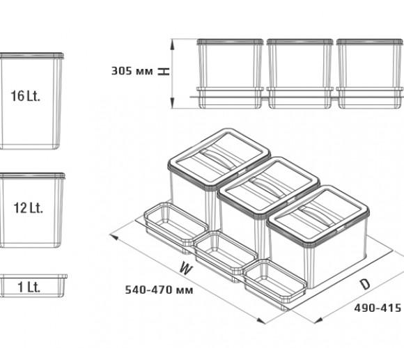 Система сортировки Starax Order шир.600 (540-470*490-415*305) S-2532-G