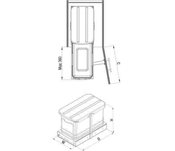 Автоматическое открывание крышки при открытии фасада, при закрывании дверцы фасада ведро плотно закрывается крышкой и возвращается в корпус.