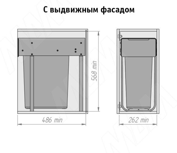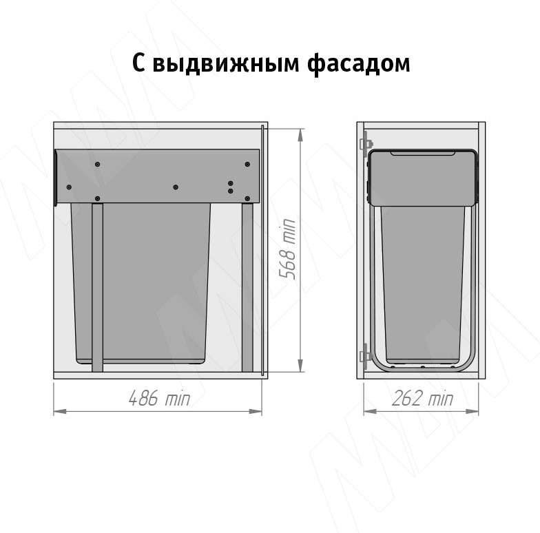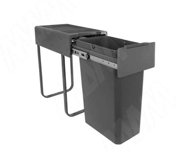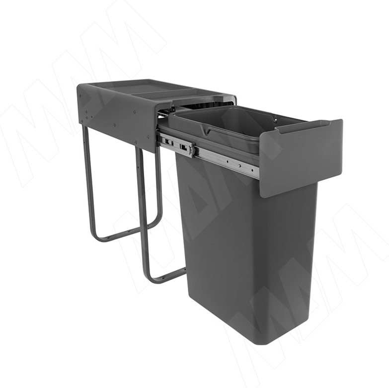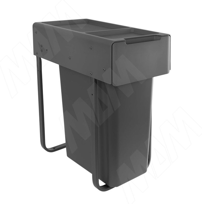 Корзина встраиваемая для мусора, объем 30л. EASYBOX F30 выдвижная с дов, крышка-полка, тем.-серый EMB301-30DG