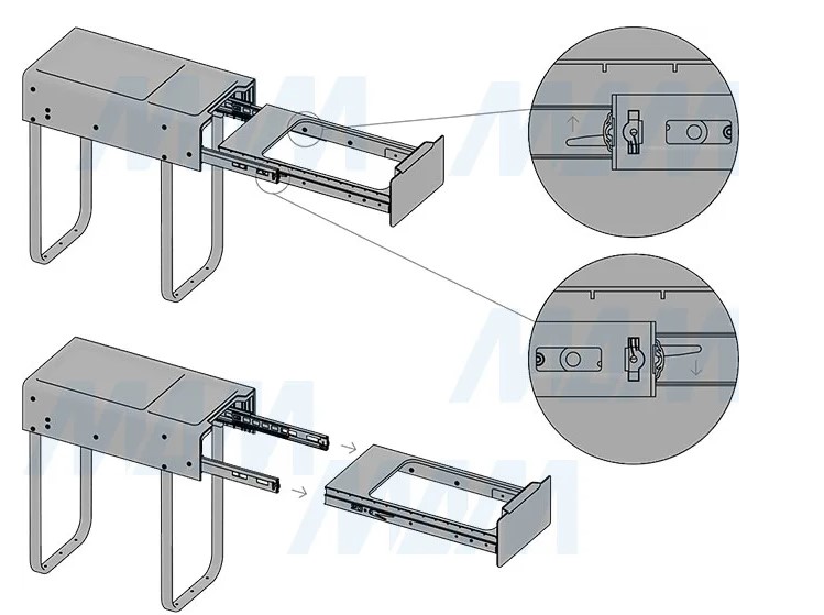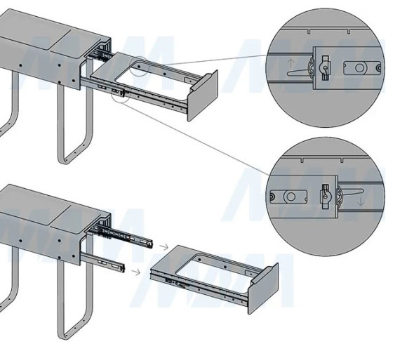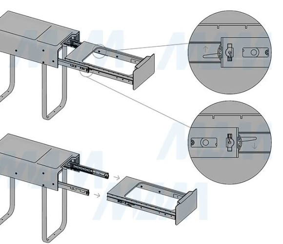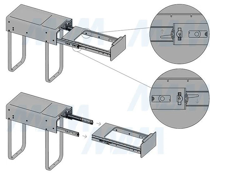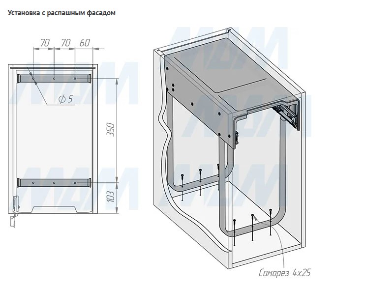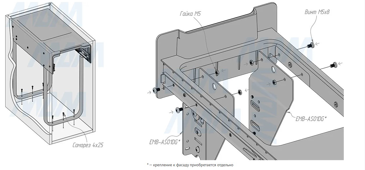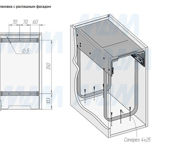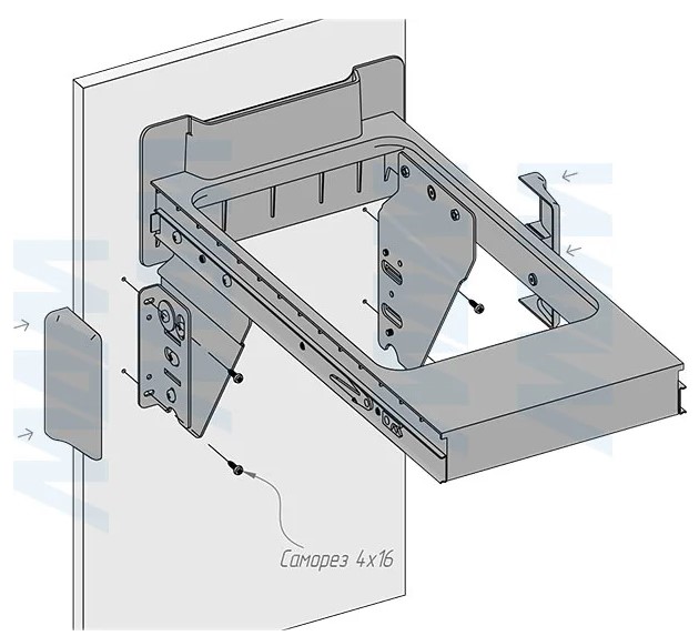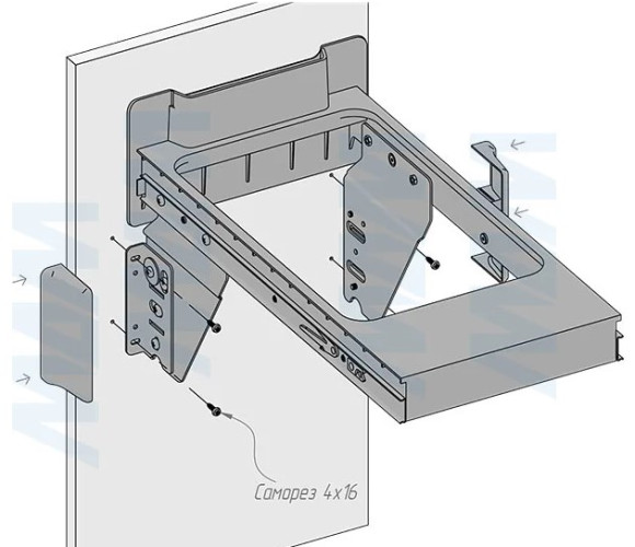 крепление к дну (возможно проводить дооснащение уже готовых кухонь);