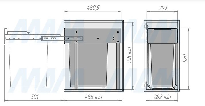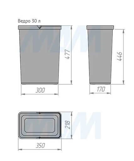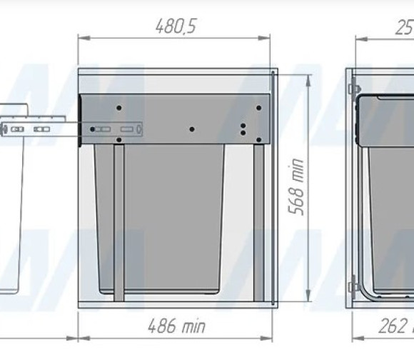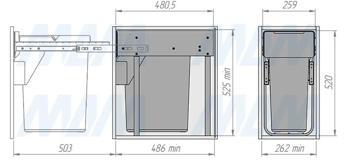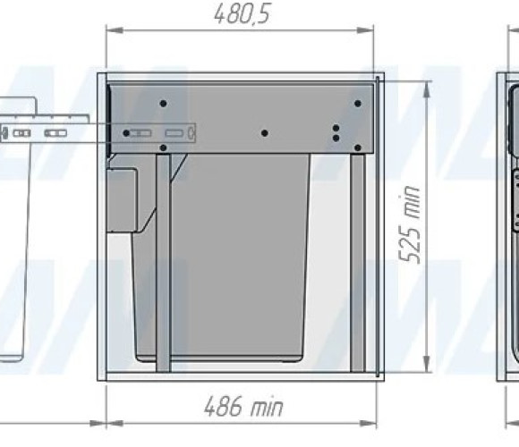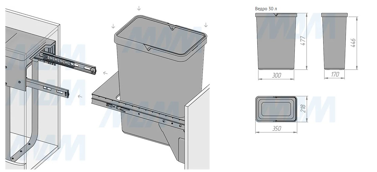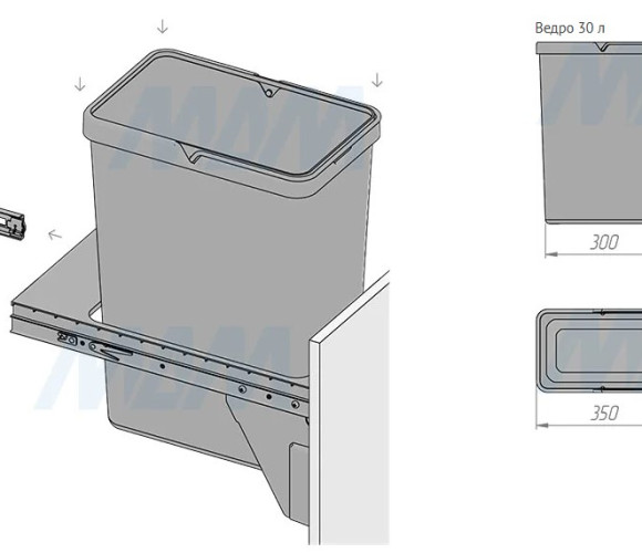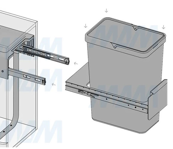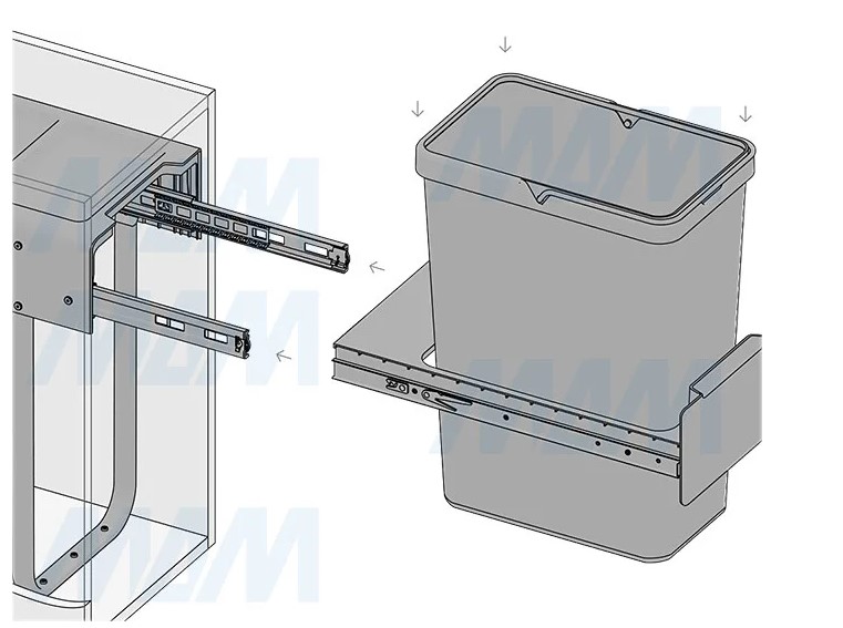Комплектация: рама с выдвижной частью (в сборе) — 1 шт., ведро с ручкой (в сборе) — 1 шт., установочный крепёж для рамы — 1 компл.