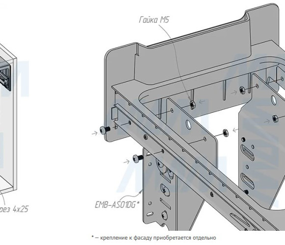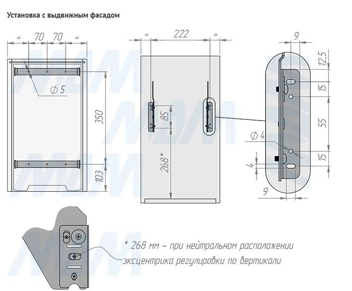 для распашных и выдвижных фасадов (с дополнительным крепежом);