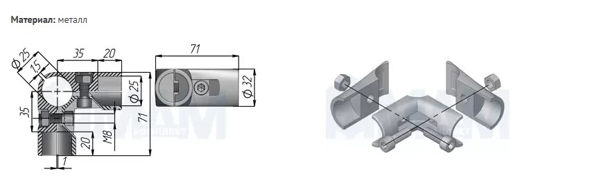 Соединитель угловой 3-х труб, черный 221.BL 03