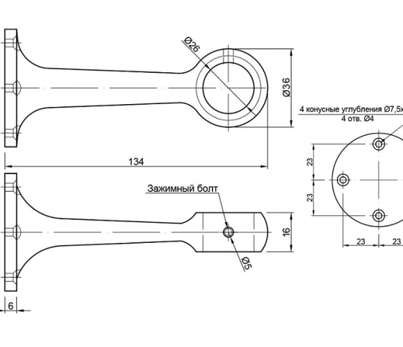 Держатель дистанционный сквозной, R-50 (JK 58), двойная полировка, хром 160138