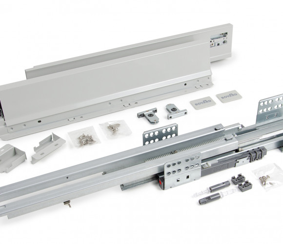 СТАРТ PUSH SB09 — комплект систем выдвижения для сборки выдвижного мебельного ящика с традиционными боковинами стандартной высоты с открытием от нажатия для мебели без ручек.