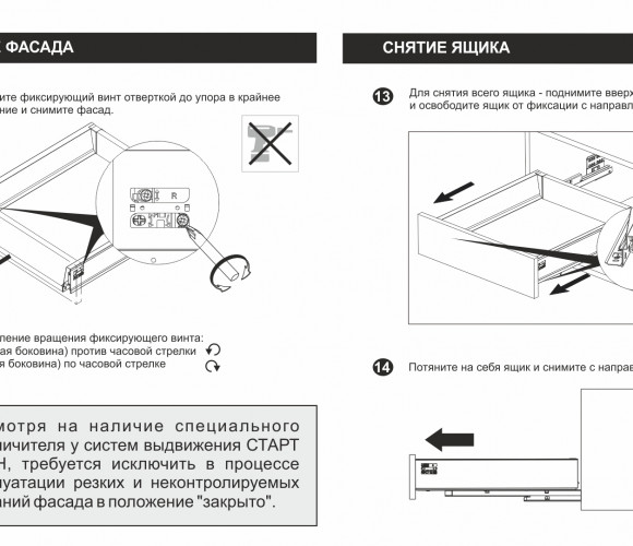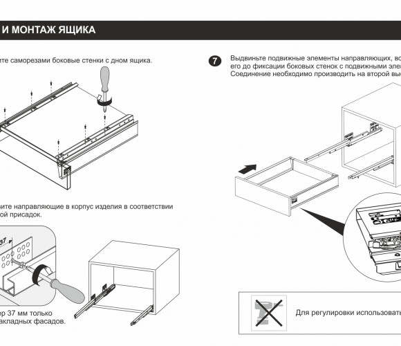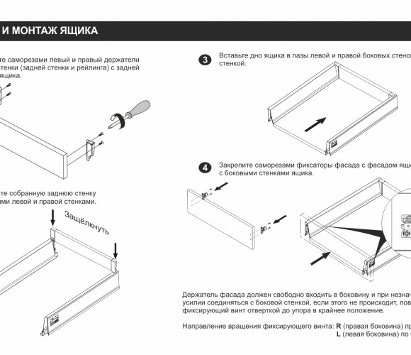 Для сборки выдвижного мебельного ящика на базе СТАРТ PUSH SB09 необходимо самостоятельно изготовить фасад, заднюю стенку и дно ящика.