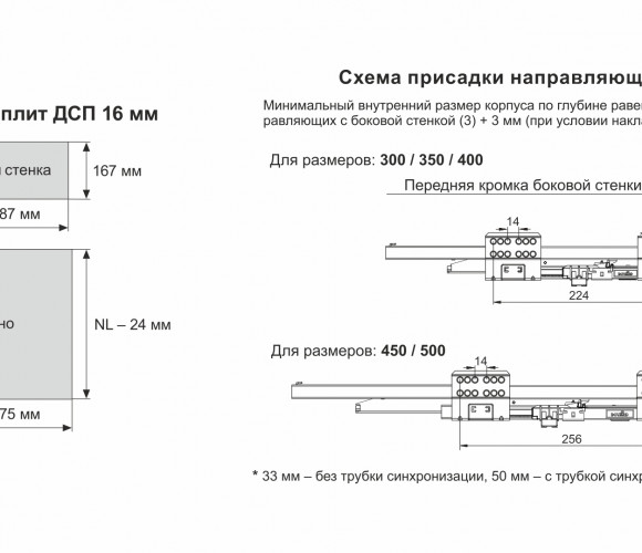 СТАРТ PUSH SB30 — комплект систем выдвижения для сборки высокого выдвижного мебельного ящика с прямыми боковинами с открытием от нажатия для мебели без ручек.