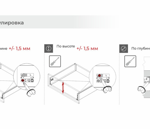 СТАРТ ПУШ+СОФТ допускает регулировку фасада по ширине и высоте на +/- 1,5 мм.