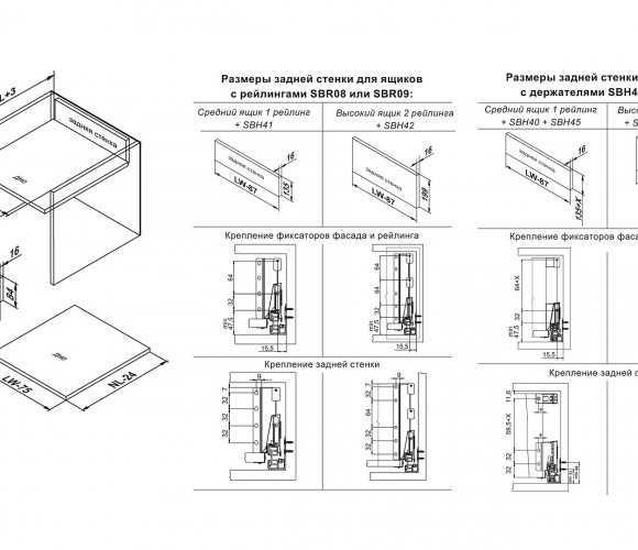 SBR09 – прямоугольный рейлинг, предназначенный для формирования выдвижных мебельных ящиков. Применяется с держателями рейлинга SBH40 и держателями задней стенки SBH61, SBH62, SBH63 (в зависимости от выбранной высоты боковин) для формирования выдвижного мебельного ящика любой желаемой высоты с прямыми боковинами в графитовом цвете.