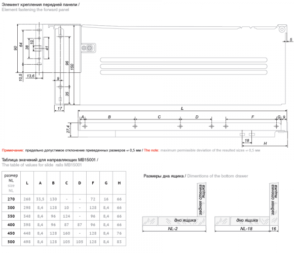 Монтажная длина: 450 мм