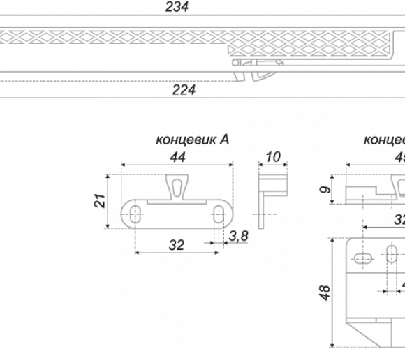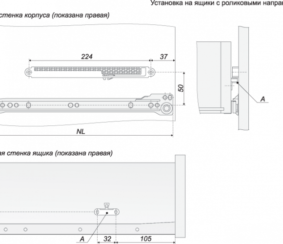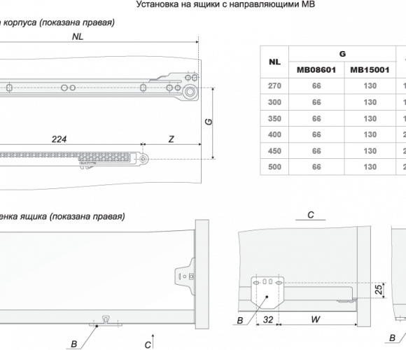 Доводчик мебельный для роликовых и шариковых направляющих, направляющих MB.
