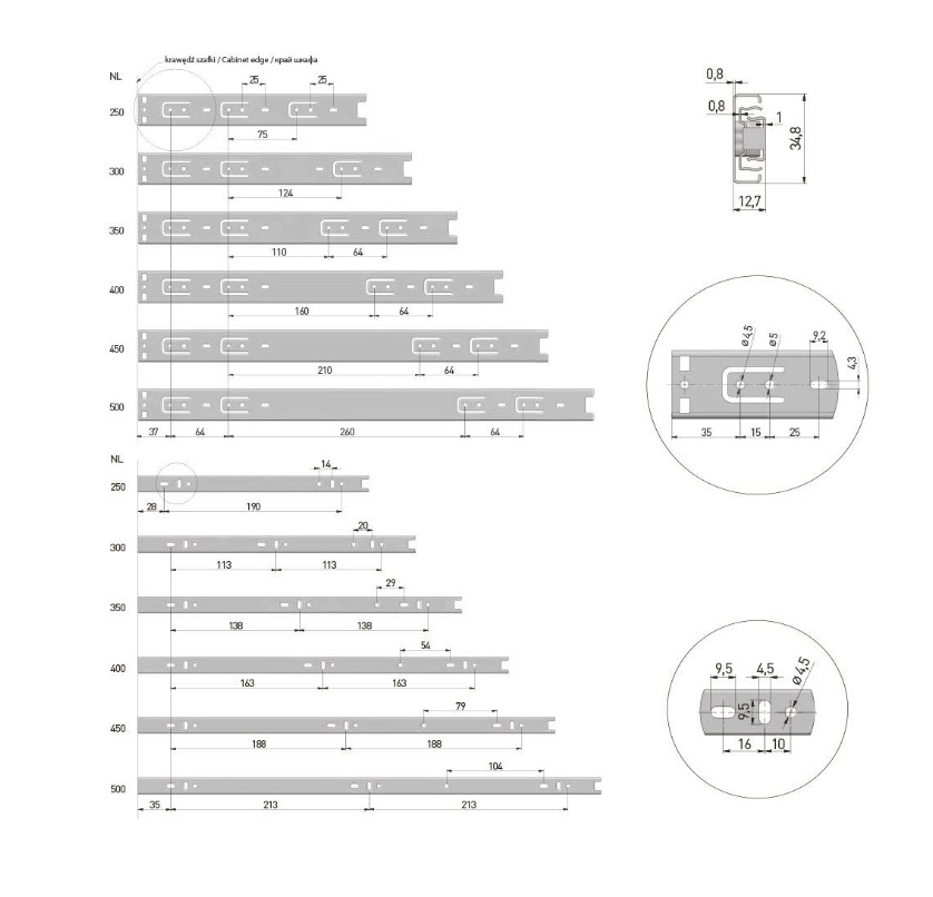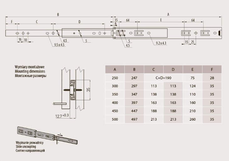 Направляющая 35 мм полного выдвижения левая - 1 шт.