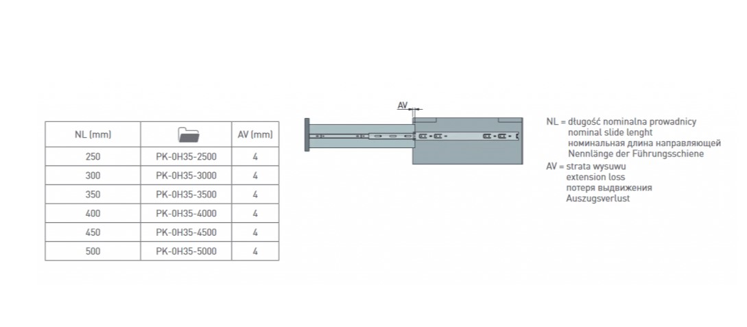 Направляющая 35 мм полного выдвижения правая - 1 шт.
