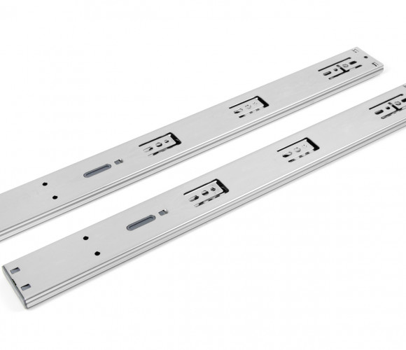 DB4525 выносливы и надежны, выдерживают до 30 кг (в зависимости от монтажной длины и с учетом веса самого мебельного ящика) и рассчитаны на 50 000 циклов открывания/закрывания. Представлены в широком диапазоне длин: от 300 до 550 мм (с шагом 50 мм), с полным выдвижением, начиная с длины 450 мм.