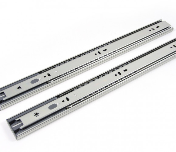 DB4525 выносливы и надежны, выдерживают до 30 кг (в зависимости от монтажной длины и с учетом веса самого мебельного ящика) и рассчитаны на 50 000 циклов открывания/закрывания. Представлены в широком диапазоне длин: от 300 до 550 мм (с шагом 50 мм), с полным выдвижением, начиная с длины 450 мм.