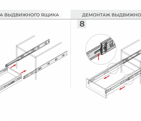 Модель комфортна и приятна в использовании, обеспечивает равномерное и плавное закрывание выдвижного мебельного ящика благодаря усиленной конструкции доводчика с двумя пружинами и амортизатором. Механизм доведения обладает функцией самопостановки при сбросе. Для перевзвода нужно вручную довести мебельный ящик в положение «закрыто», и доводчик будет снова активирован.