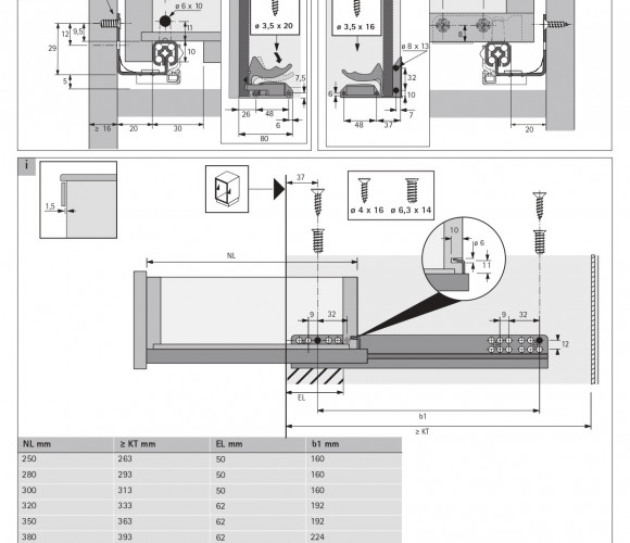 9105635 Quadro 25/250 Stop Control, направляющая частичного выдвижения, ЕВ 20, левая