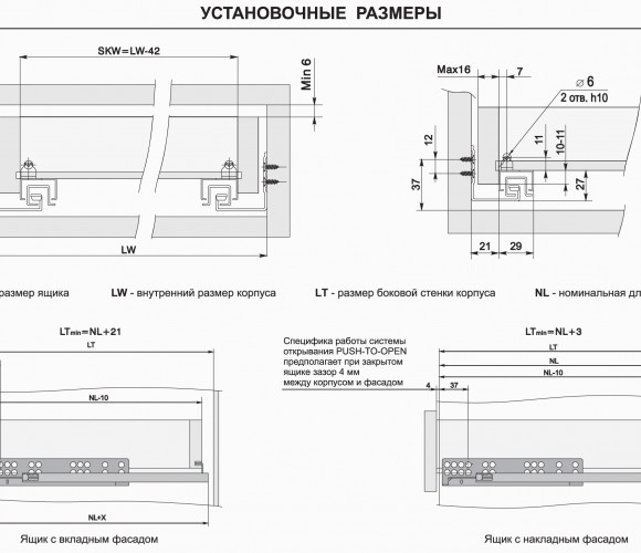 Тип движения: push-to-open (выдвижение после нажатия)