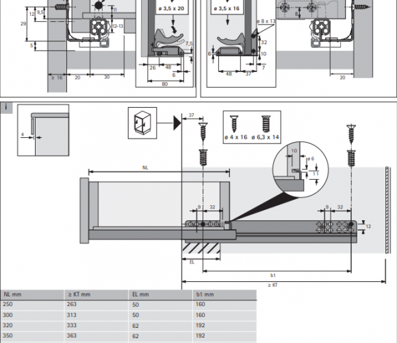 9111359 Quadro V6 30/250 Push to open, направляющая полного выдвижения, EB 20, левая
