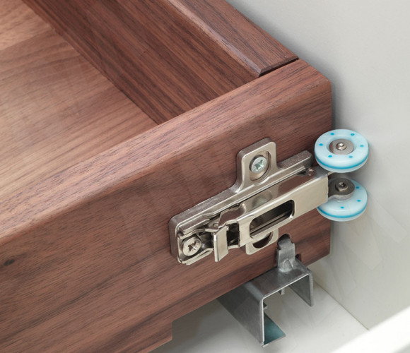 Применение: повышает стабильность перемещения ящика в мебели и улучшает срабатывание механизма открывания от нажатия, когда нажатие происходит ближе к одной из сторон ящика; может использоваться со многими типами систем выдвижения