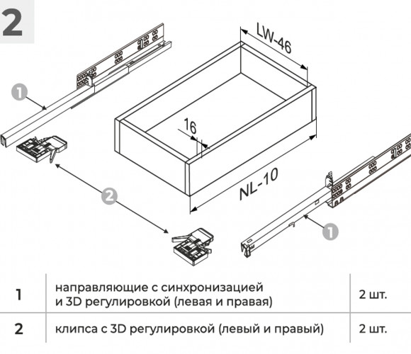 B-Slide DB9991 — направляющие скрытого монтажа полного выдвижения с 3D-регулировкой и синхронизацией. Реальная корректная и полноценная 3d-регулировка с помощью клипсы и подвижного заднего крючка позволит легко уточнить положение мебельного ящика или компенсировать возможные погрешности монтажа без применения доп. инструмента и без ухудшений параметров комфортного хода.