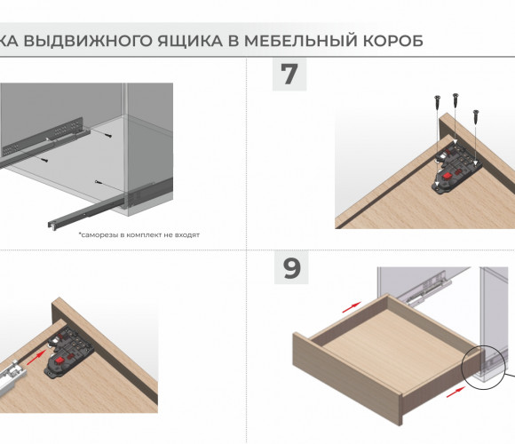 • простой монтаж выдвижного ящика на направляющие и быстрый демонтаж;
