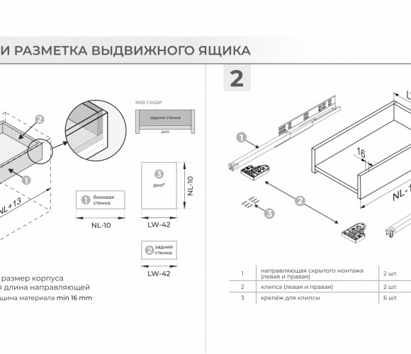 • простой монтаж выдвижного ящика на направляющие и быстрый демонтаж;