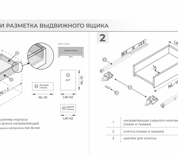 B-Slide DB8782 — базовые направляющие скрытого монтажа неполного выдвижения с плавным доведением. Модель надвижного монтажа с клипсой.