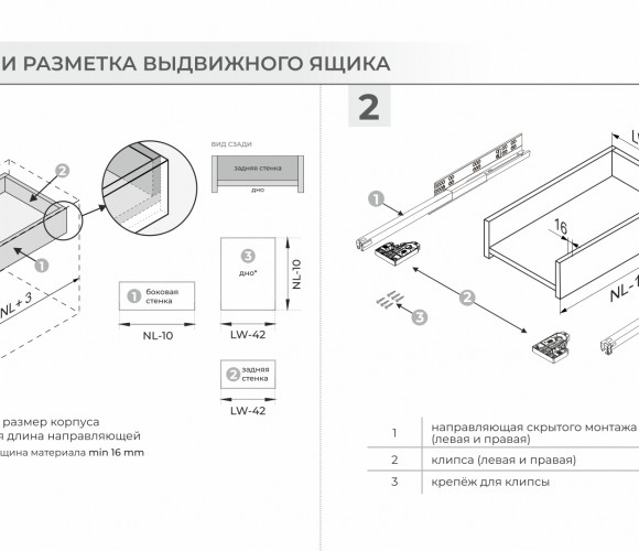 • простой монтаж выдвижного ящика на направляющие и быстрый демонтаж;